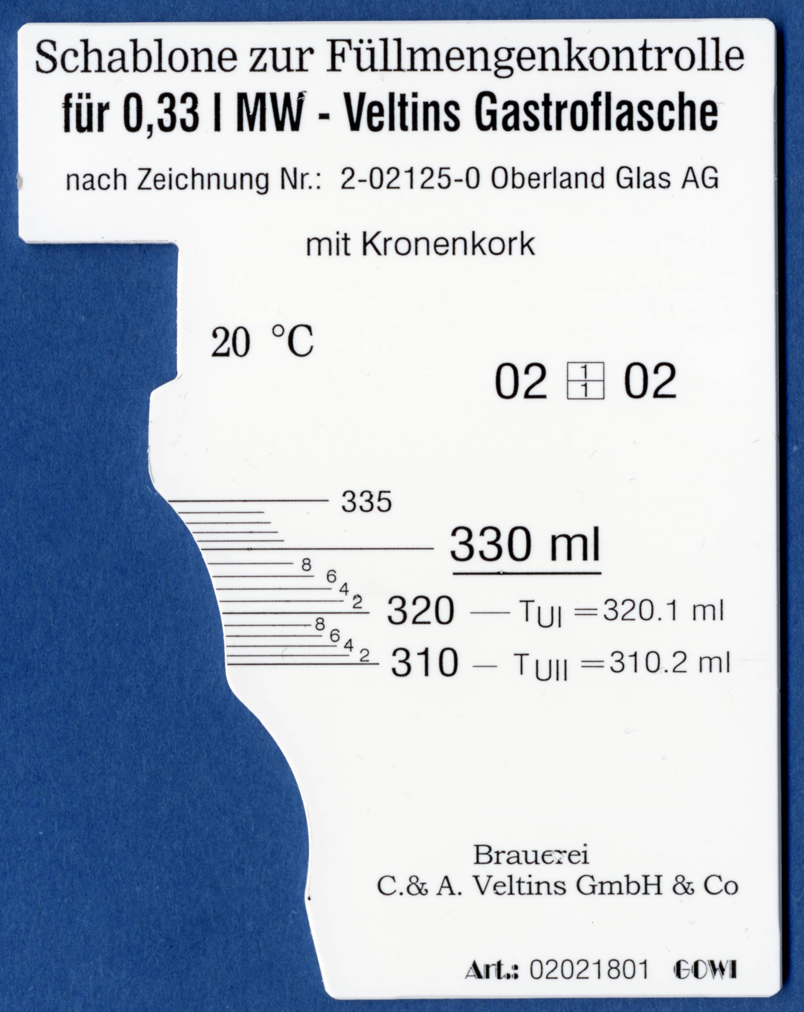Mit Kronenkork, nach Zeichnung Nr. 2-02125-0 Oberland Glas AG